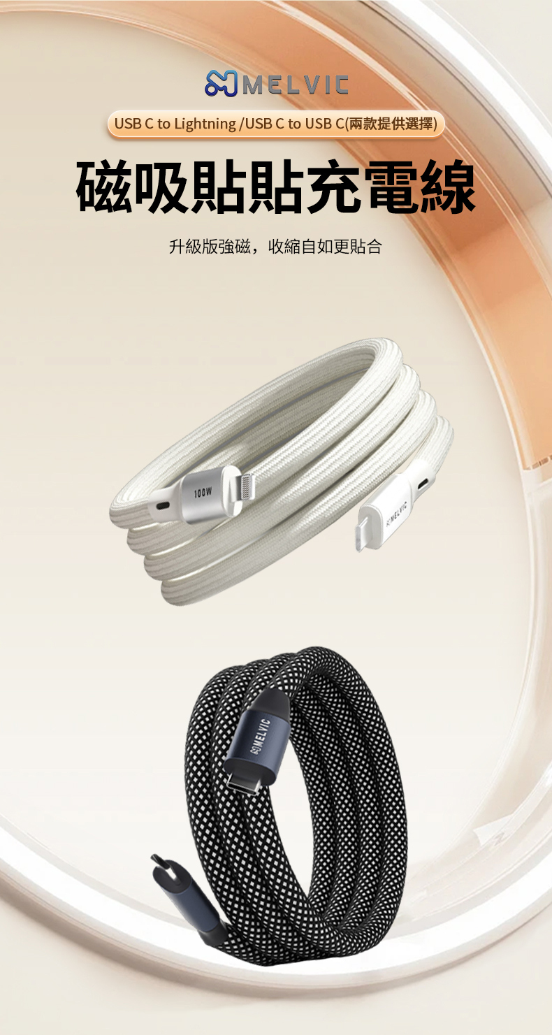 Type-C to Type-C 磁吸貼貼充電線 100W 100cm 200cm ; MFI 認證 🙏Type C - to Lightning 27W 120cm/好收納黑白/米白